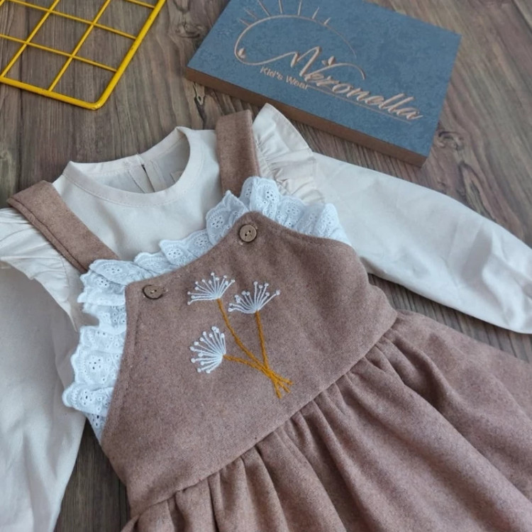 🔸️با نوار خامه دوزی و گلدوزی با دست خوشگلش روی سینه